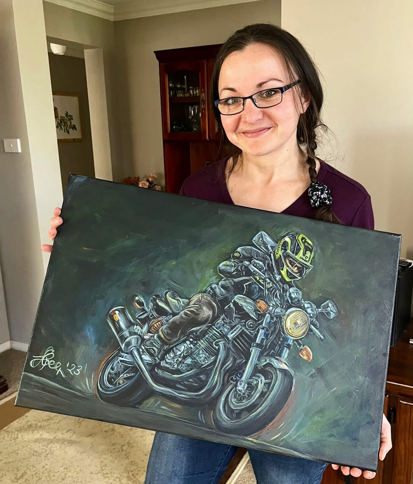 As she ventured into her early twenties, her passion for painting blossomed, marking the start of a humble artistic career. Despite juggling roles in various fields such as office administration, nutrition coaching, and personal training alongside the joys and challenges of motherhood, Julie’s commitment to embracing her professional ambitions and creative interests has remained unwavering.